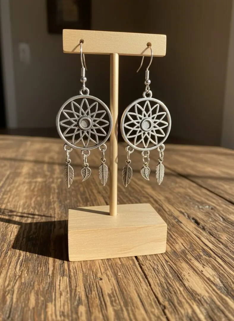 These boho-chic earrings feature radiant sunburst medallions paired with delicate dangling leaf charms, creating an earthy, dreamcatcher-inspired design. Finished in a soft silver tone, they sway beautifully with movement while remaining lightweight and comfortable for all-day wear. Perfect for nature lovers and free spirits, they bring a touch of wanderlust and sunny, laid-back energy to any outfit.