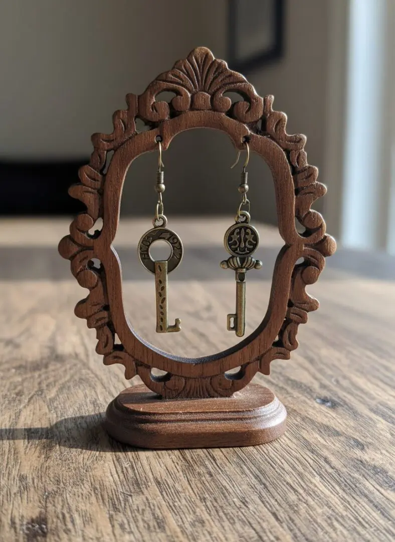 Let your style speak in symbols with this mismatched pair of antique-inspired key earrings. One features a circular head etched with delicate patterns—echoes of timeless wisdom. The other blooms with a floral filigree motif, a nod to nature’s quiet elegance. Lightweight and expressive.
